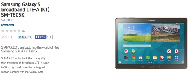 Samsung anuncia Galaxy Tab S 10.5 LTE-A na Coréia do Sul